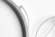 In this stainless steel bangle Watkins has retained his loyalty to the geometric shape of a circle, but has extended beyond the confines of the diameter with open wire leaves and protruding rectangular forms. The corners are cut (rather than assembled) with an incredible precision and sharpness of line.