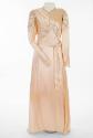 About MeThis dress was worn by a bride in September 1940, at Gowanhill Farm, in Banff. The ceremony and reception were held at the bride's parents' house. Rationing, restrictions and the uncertainty of World War Two did not stop couples making their wedding a day to remember. Brides altered outfits worn by relatives, borrowed from friends, wore older styles, hired a dress or made something new from unrationed materials like net curtains and upholstery fabric.