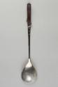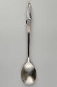 About MeForged silver spoon with curved twist finial around the blade.The dark colour is achieved through oxidisation ,a technique that allows the silversmith to dull the natural colour of the silver metal.