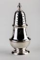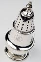 This caster has large diamond-shaped and circular holes in the cover for sprinkling sugar. Sugar bowls began to replace casters from about 1770 onwards.