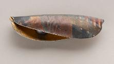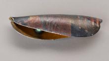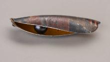 About MeMotifs of nature are combined with metal to form this very wearable brooch. The aluminium has been dyed to create pattern in rich rust, ochres and grey-greens, as has the freshwater pearl which rattles inside the pod. late 20th-early 21st Century