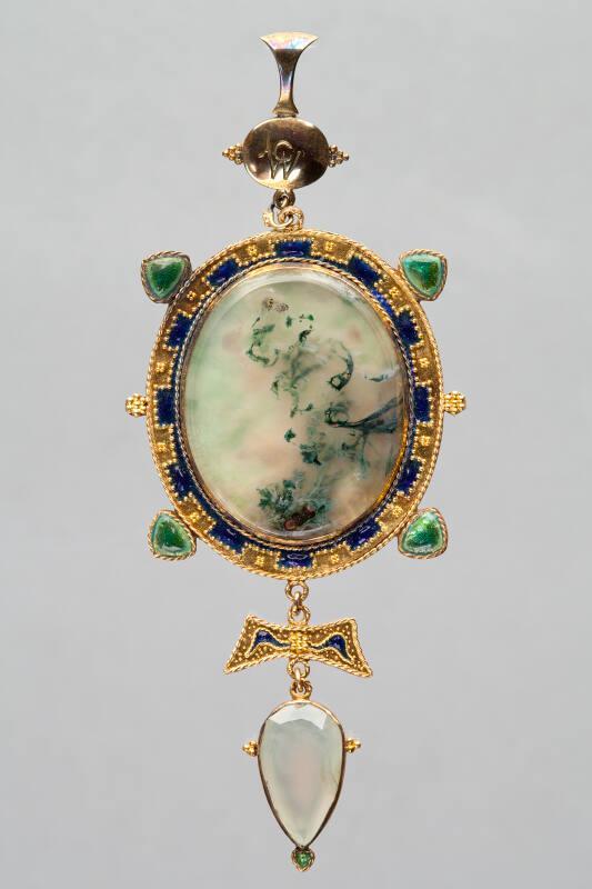 More About MeGold, gilt and enamel form the setting for a polished agate.