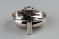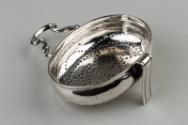 Celebrated for the fact that he had mastered multiple trades, Coline Allan was both a silversmith and a watchmaker. This oval punch strainer is oddly shaped and beautifully crafted.