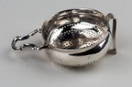 Celebrated for the fact that he had mastered multiple trades, Coline Allan was both a silversmith and a watchmaker. This oval punch strainer is oddly shaped and beautifully crafted.