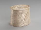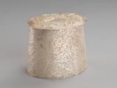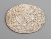 Influenced by her environment and the relationship of her culture and nature, the artist has used the motif of seaweed to embellish this vessel. The box is formed from hand pierced sheet metal pinned to an oval base and studded with small pins and applied cast seaweed forms. The treatment of punching holes through metal demonstrates a preoccupation with the effects of light.