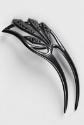 About MeBlack celluloid ornamental hair comb with two teeth and a decorative heading, which features a pierced fan-style design with faceted decoration.Other materials such as celluloid and black glass were often used as a cheaper alternative to Whitby jet, which could be very expensive.