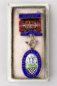 This decoration is in fact a Masonic Jewel. Freemasonary is a secular fraternal society that is said to have originated in Scotland in the late sixteenth century. This particular jewel is that of a Founder, and was awarded to the member who founded the Royal Braemar Masonic Lodge, located in Newmachar, in 1919. The medal reads 'FOUNDER/ 1919/ LODGE ROYAL BRAEMAR/ NO. 1195'.