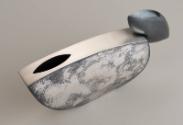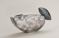 Oxidisation is a process where metal is exposed to a sulphur solution in order to turn it dark. Areas are then polished to retrieve the original silver colour. This allows for interesting patterns and textures such as the cloud formations on this vessel.