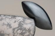 Rawnsley was inspired by landscape, particularly that of Wales. Here, oxidation of the silver by exposure to sulphur has darkened the metal, which by polishing produces interesting patterns as in these cloud formations