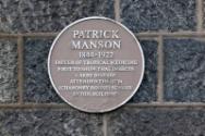 His obituary appeared in The Times of 10 April 1922, where he was described as an ‘Empire Builder’. There is a biography of him by his son-in-law, Sir Philip Manson-Bahr entitled Patrick Manson. The Father of Tropical Medicine (London, Thomas Nelson and Sons Ltd, 1962). Some of Manson’s papers and diaries, and correspondence between Manson and Ross at the time of Ross’ malaria research are held at the London School of Hygiene and Tropical Medicine Archives whilst other case notes (from China) are held by the Wellcome Library. This plaque is erected on the old Gym School part of what is now the Cruickshank building (part of the University of Aberdeen) in the Chanonry, Old Aberdeen.
